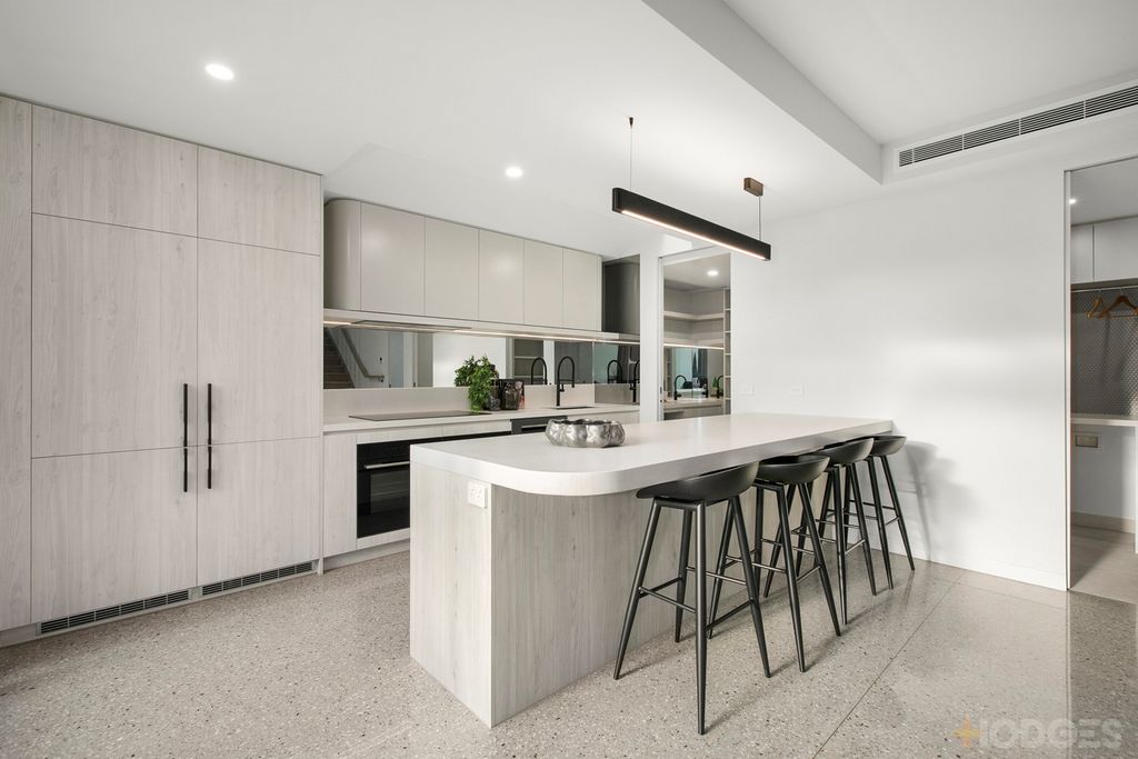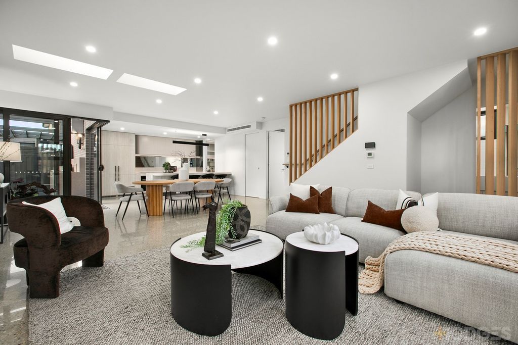 Samengesteld in een hypermoderne stijl met verwarmde vloeren van gepolijst beton in terrazzostijl en strakke stenen werkbladen, zijn er fijne details in de 5-sterren betegelde badkamer en ensuite, op maat gemaakt ontwerp in ingebouwde en inloopbadjassen en werkplekinrichtingen ... en gedurfde architectonische details in een betegelde muur beneden, muren van dubbele beglazing op de bovenverdieping en hoge dakramen op beide niveaus! Geklimatiseerd over meerdere zones, gaan de afspraken van het huis ook verder dan dat; met de beveiliging van video-intercom en keyless entry, en auto-gated parking voor twee auto's, inclusief een autogarage.