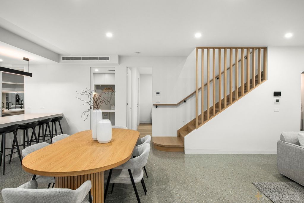 Curated in cutting-edge style with terrazzo-style heated polished-concrete floors and sleek stone benchtops, there’s fine detail in the 5 Star feature-tiled bathroom and ensuite, bespoke design in built-in and walk-in robes and workstation fit-outs ...and bold architectural detail in a tiled feature-wall downstairs, walls of double-glazing upstairs and soaring skylights on both levels! Climate-controlled over multiple zones, the home’s appointments go above and beyond too; with the security of video-intercom and keyless entry, and two-car auto-gated parking including an auto-garage.